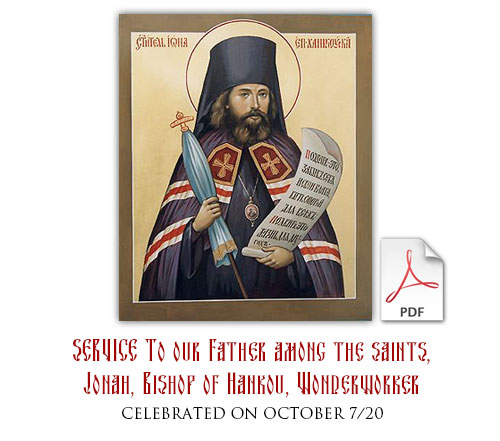 To our Father among the saints, Jonah, Bishop of Hankou, Wonderworker