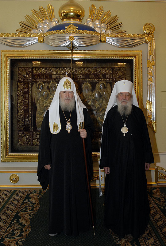 On May 15, 2007, the First Hierarch of the Russian Orthodox Church Outside of Russia, His Eminence Metropolitan Laurus, and His Holiness patriarch Allexy II of Moscow and All Russia, met at Danilov Monastery.