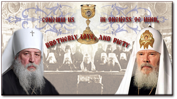 After the troparions, sung in turn by the unified choir of the Russian Orthodox Church Outside of Russia and by Holy Trinity-St Sergius Lavra Choir, His Holiness Patriarch Alexy II of Moscow and All Russia read a special prayer which included the words: “As Thee lifted Thy prayers to Thy Heavenly Father for Thy disciples, that they all be as one, gaze now with Thy merciful eyes upon Thy people, who have sinned and disobeyed Thy will, bless now our good intention and the unification of the Church to Your Glory, create this Thyself, dampen all church temptations and divisions. Having given to us Thy law to love Thee, our God, and our neighbor, deliver us from all insult and disruption, may brotherly love reign among the children of our Church, in the Fatherland and in the diaspora. Grant that we may now enter Thy temple and bring Thy bloodless sacrifice, that we may be unified in one body through communion with Thy Life-creating Body and Thy Honorable Blood and bring praise with all our hearts to Thy ineffable love for mankind.”