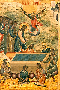 В Иерусалиме жил человек, который почти четыре десятка лет был парализован (Ин. 5, 5). Он лежал в одном из притворов у купели, называемой Вифезда, и не было никого, кто мог бы ему помочь (Ин. 5, 7). Ангел Господень сходил иногда в воду, и первый, кто входил в купель, получал исцеление от недугов (Ин. 5, 3). Множество увечных, «больных, слепых, хромых, иссохших» (Ин 5, 3) собиралось у купели, и расслабленный, как ни старался доползти до купели, никогда не успевал, и другой уже входил прежде него. Но человек этот, несмотря на всю безвыходность своего положения, не терял надежды и продолжал ждать милости Божией. И вот в день Пятитесятницы пришел долгожданный Утешитель, Тот, Кто жизнь подал иссохшему телу, упование, и прибежище, и покров.