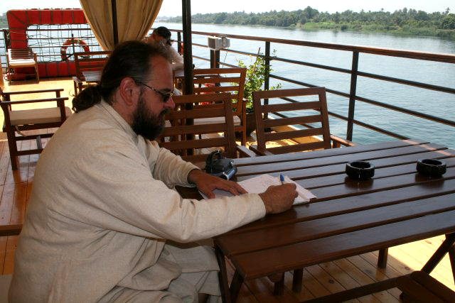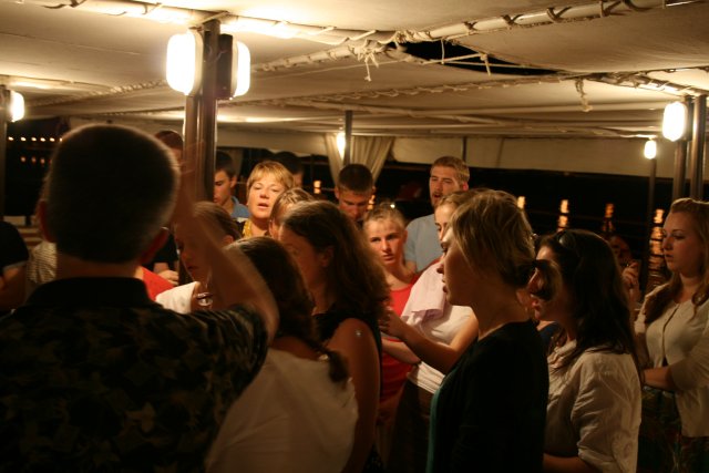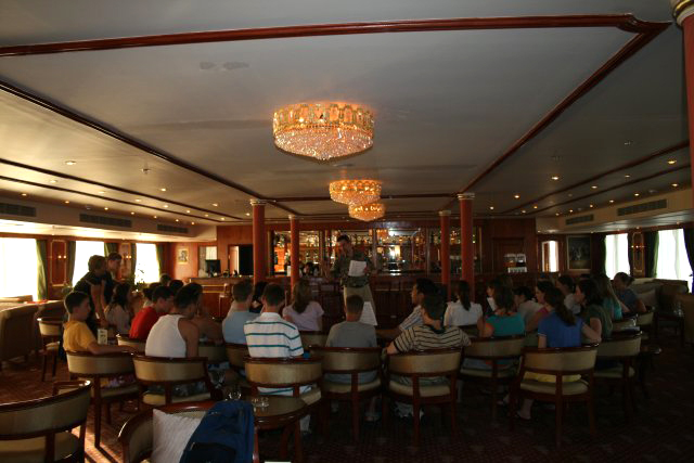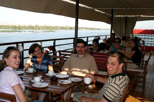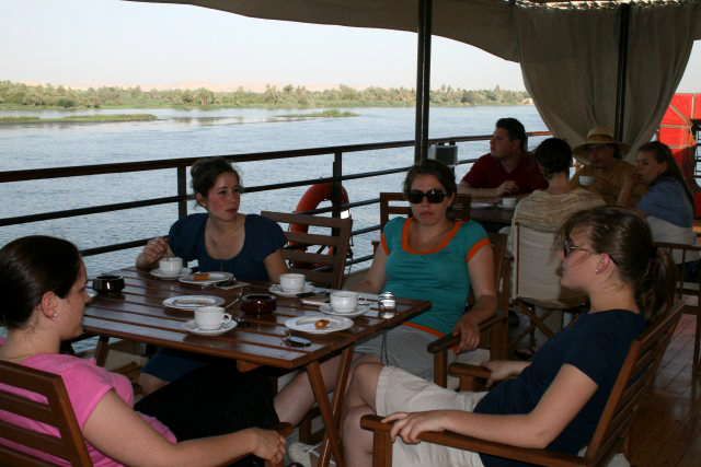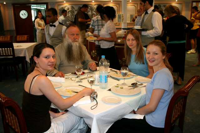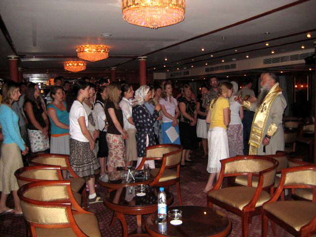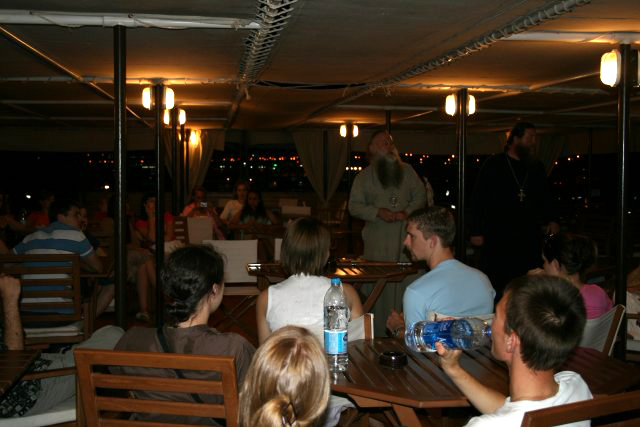 В четверг 28 июня молодые участники паломничества «По стопам Моисея» отправились по реке Нилу в северную часть Египта, откуда в скором времени направятся на Синайскую гору. На теплоходе епископ Кливлендский Петр проводил беседы с молодежью о Священном Писании, истории Церкви и о святителе Шанхайском и Сан-Францисском Иоанне (Максимовиче), у которого Его Преосвященство служил келейником в 60-ые годы минувшего столетия. Здесь также проводились спевки хора из молодежи (40 человек) под управлением М.Д. Гилла, регента архиерейского хора Покровского кафедрального собора в Чикаго. Если Бог даст, молодежный хор примет участие в богослужениях во время паломничества. В канун памяти святителя Иоанна, после беседы о нем, Преосвященный Петр совершил молебное пение перед иконой святого.