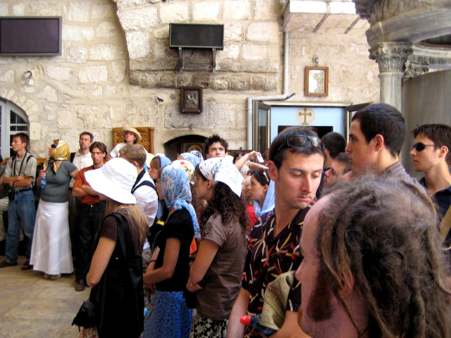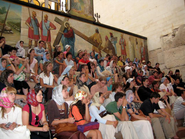 Наиболее впечатляющим моментом этого первого дня в Иерусалиме было пение молодежью пасхальных песнопений у Гроба Господня, которое она совершала со благоговением, слезами и поминовением родных и друзей.