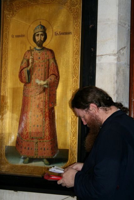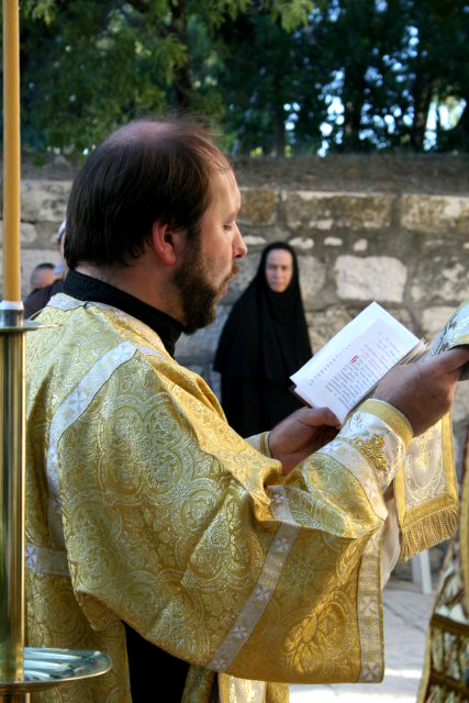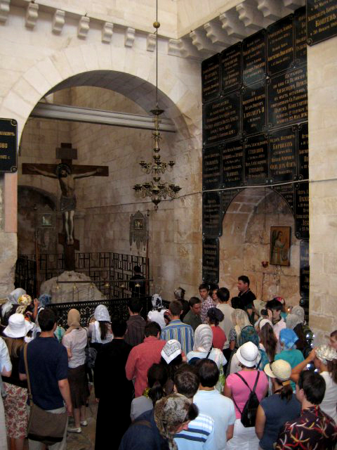 К священному Порогу русское духовенство исходит в Великий Четверг из Гефсиманского храма святой Марии Магдалины вечером, после утрени и чтения 12 Евангелий, со свечами и пением, сопутствуемое русским населением Святого Града, и там завершается Страстная служба в этот день, когда Церковь вспоминает мироспасительное страдание Своего Главы, на том самом месте, где Он восходил на Голгофу под тяжестью Креста. Хра м «Раскопок» окормляется духовенством Русской Духовной Миссии (Русской Зарубежной Церкви) в Иерусалиме.