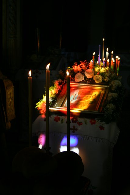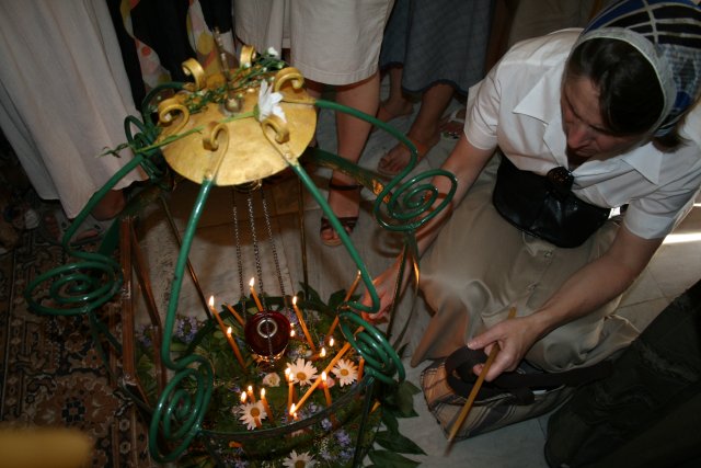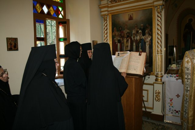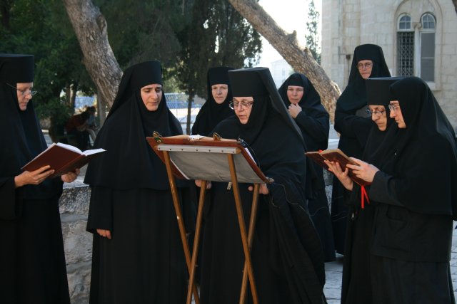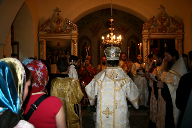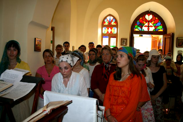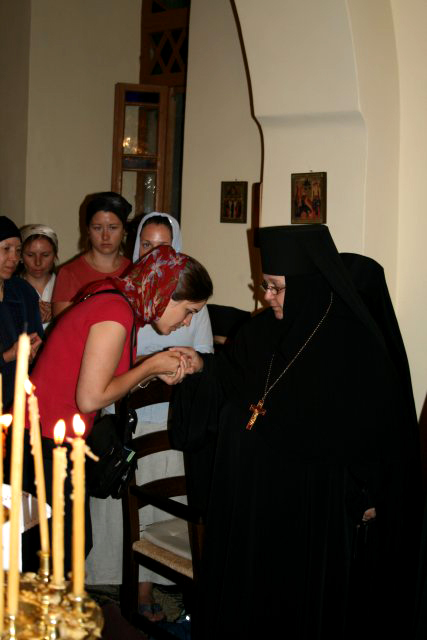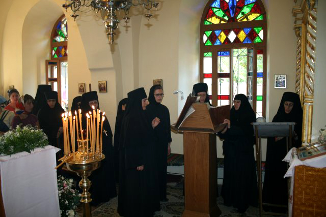 6 июля вечером паломники молились за всенощным бдением под праздник Рождества Иоанна Предтечи в Спасо-Вознесенском монастыре на Елеоне.